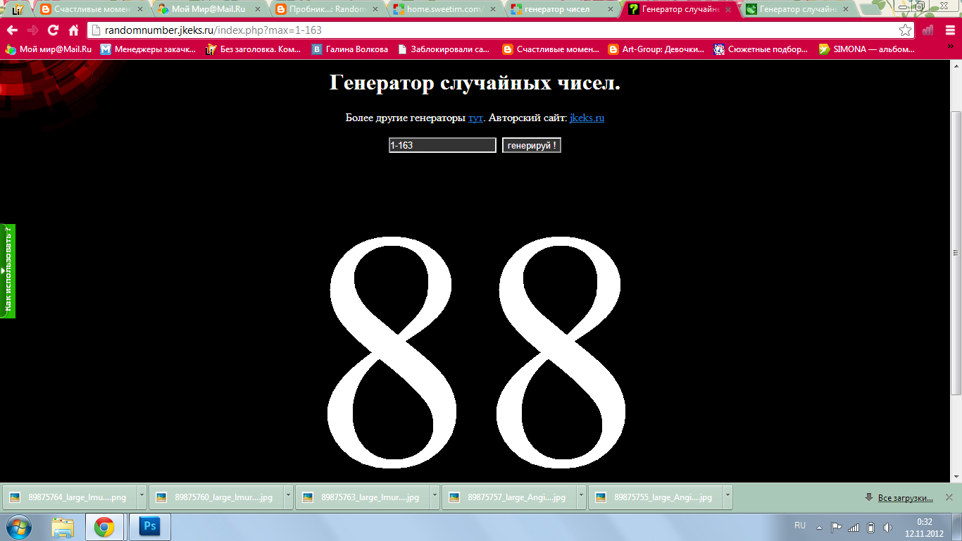 Надеюсь, что вы все проверили свои имена в списке участвующих! Желающих поучаствовать в розыгрыше конфетки было 163 человека.