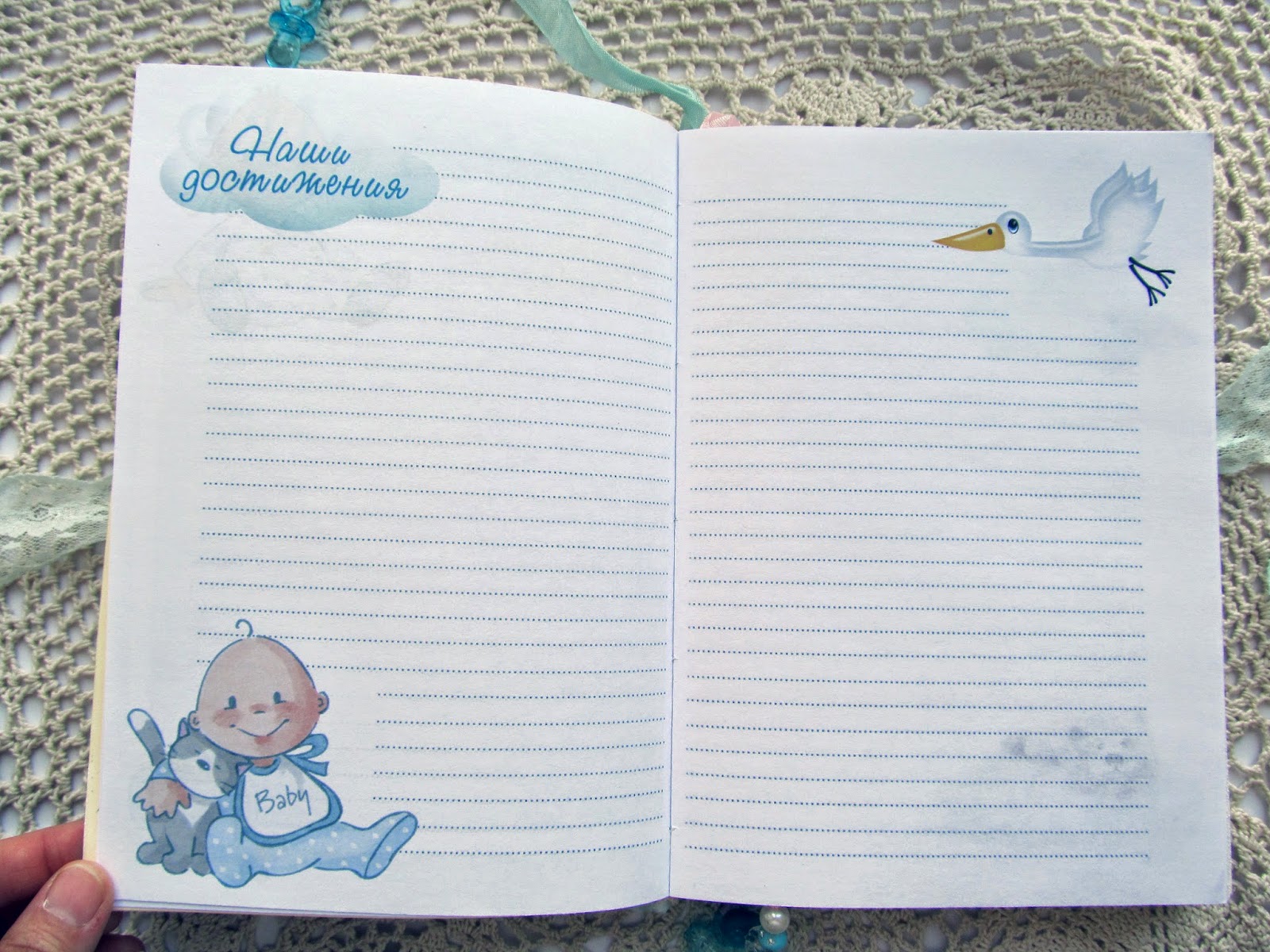 Сделала для удобства две закладки. Потому что книга разделена на разные главы, начиная от ожидания нашего птенчика и помесячно до годика.